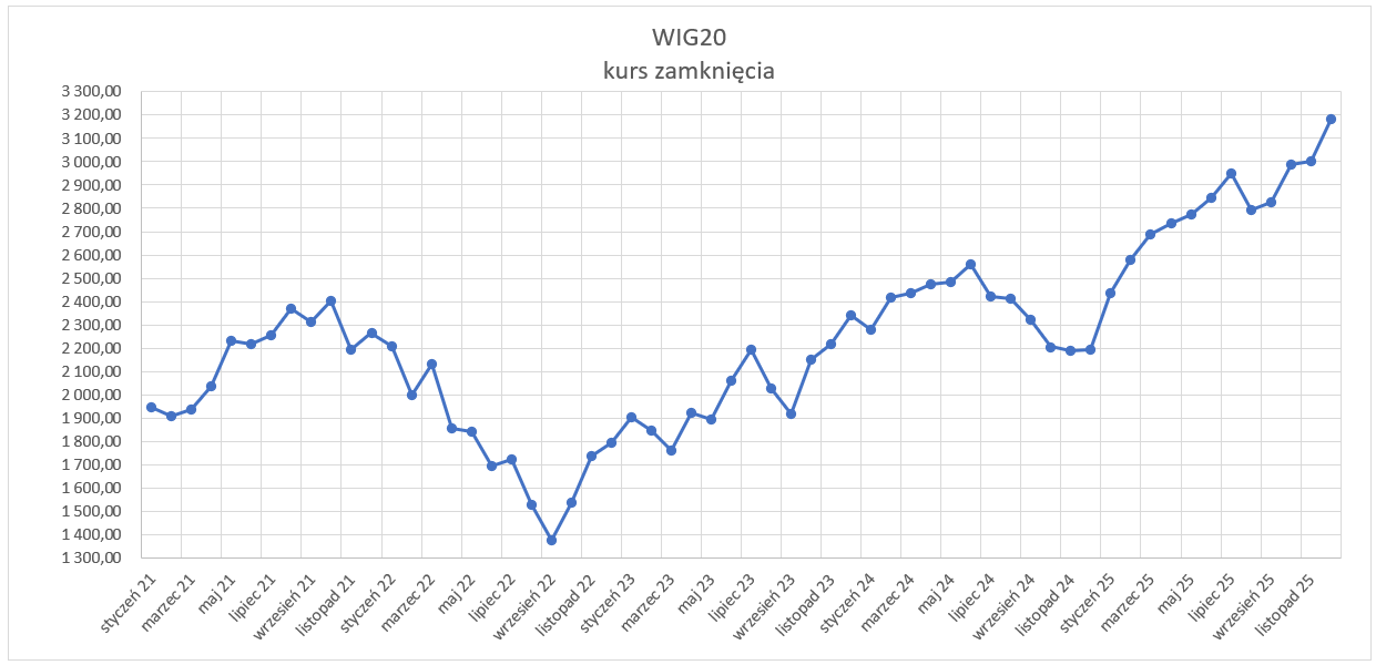 Indeks WIG20 – kurs i zmiany w grudniu 2025