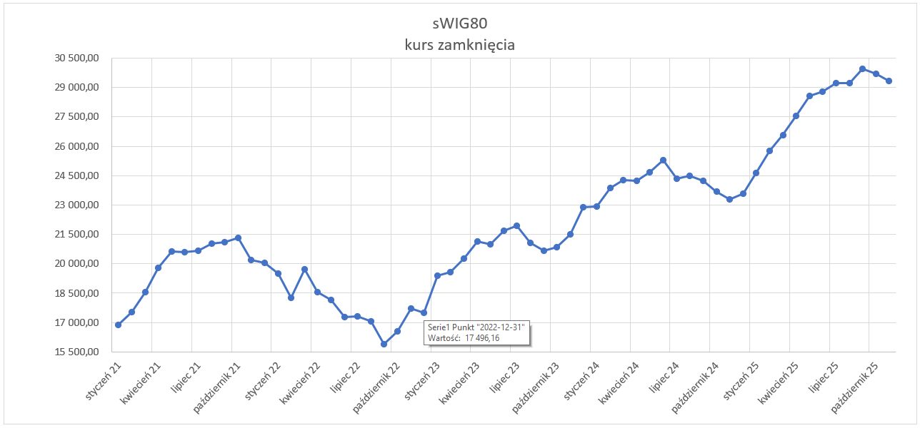 Indeks sWIG80 – kurs i zmiana w listopadzie 2025
