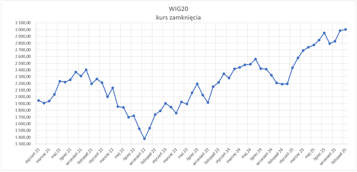 Indeks WIG20 – kurs i zmiany w listopadzie 2025