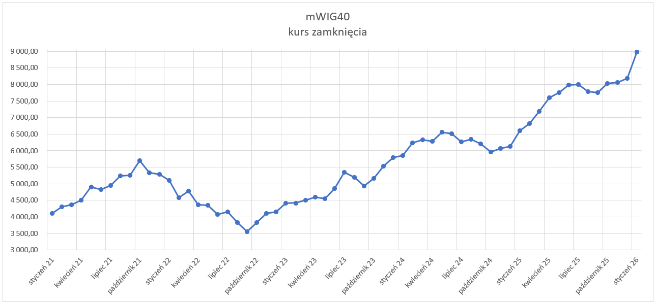 Indeks mWIG40 – dane na styczeń 2026