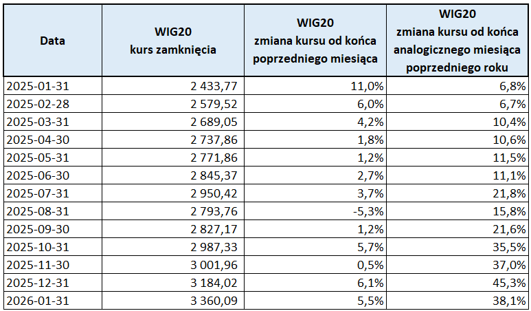 Indeks WIG20 – kurs i zmiany w styczniu 2026